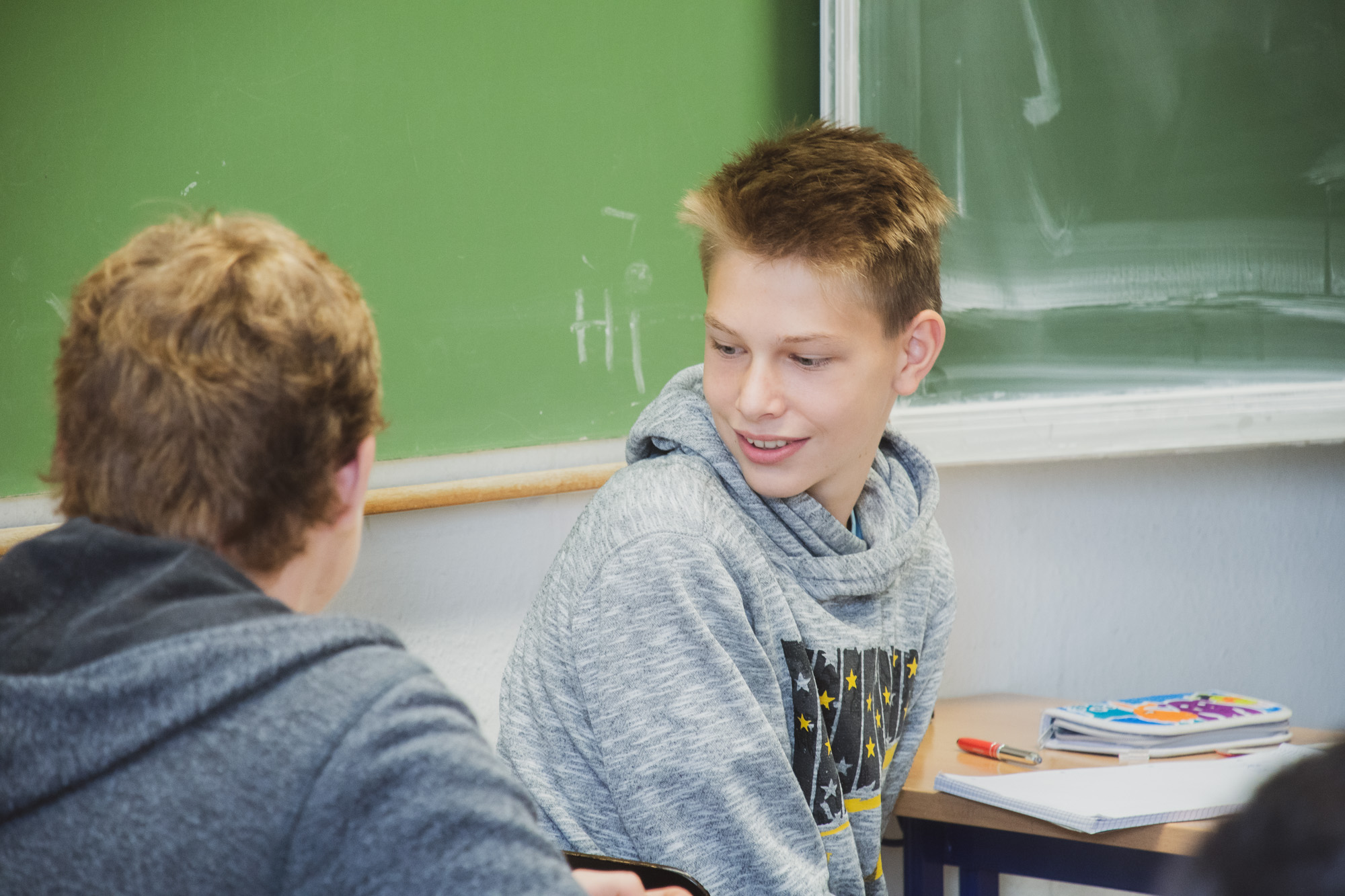 Aktive Mitarbeit wird nicht als notwendiges Übel für das Erreichen von guten Noten angesehen, sondern geschieht ganz freiwillig aus Spaß am Kommunizieren und Verstehen – und das in jeder Unterrichtsstunde.