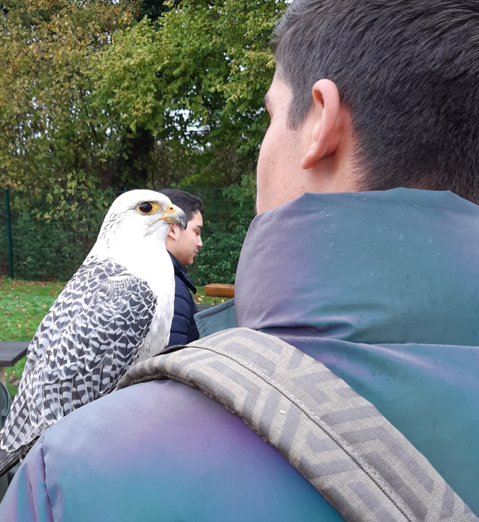 Die Klasse 8 der Kölner Privatschule entschied sich 3 Tage nach dem Hubertustag – dem Tag der Jäger und Falkner - für den Besuch der Falknerei Pierre Schmidt in Gymnich. Petrus schien uns zunächst wenig gewogen, denn am Morgen regnete es „Hunde und Katzen“, so dass wir sogar eine Absage erwogen. Jedoch allen Widrigkeiten trotzend starteten wir und pünktlich mit dem Eintreffen in der Falknerei, einem warmen herzlichen Empfang und ersten Eindrücken über die Gehege der Greifvögel legte der Regen eine Pause ein und es klarte auf – perfekte Flugbedingungen für die Greif- und Eulenvögel, welche in der Falknerei betreut und ausgebildet werden.