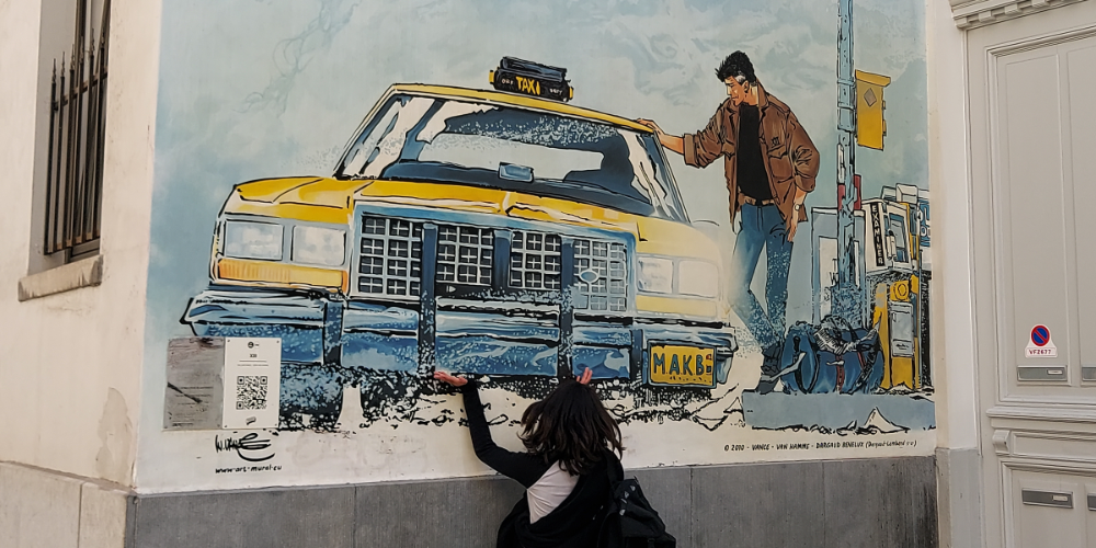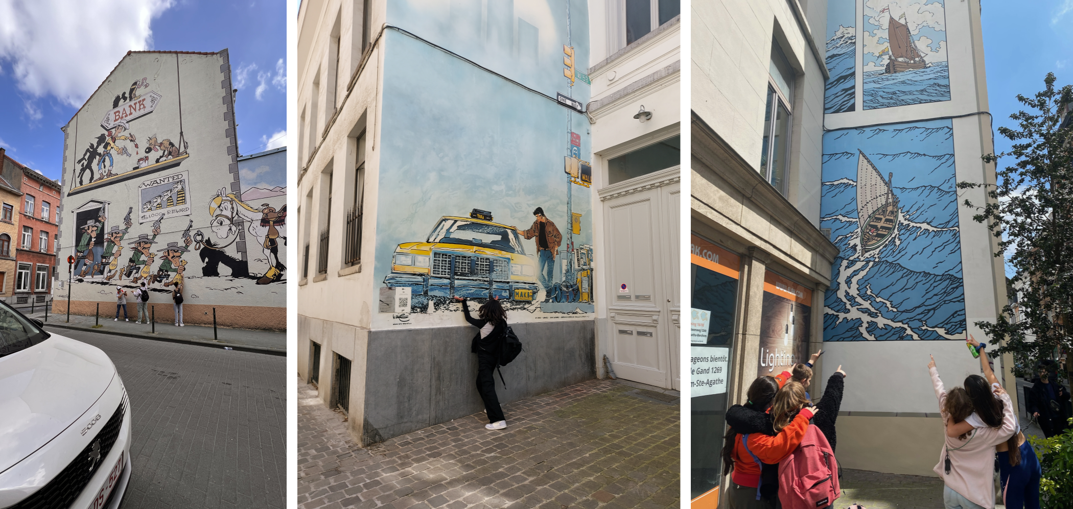 'Da geht's lang, sagt Google.' 'Nee, Blödsinn! Nach dem Stadtplan müssen wir hier 'rein?!' 'Ihr Blindfische! Da isses doch schon! Ich sehe es doch in dem Fenster da vorne gespiegelt'. So ging es die ganze Zeit, als wir, die Schüler der KPS, in den Straßen von Brüssel rallyemäßig auf der Suche nach Comic-Murals unterwegs waren. Diese sollten gefunden und als Beweis für ihre Entdeckung fotografiert werden. Sehr geholfen haben uns dabei aber zugegebenermaßen auch etliche Passanten wie der nette Döner-Verkäufer oder der Bauarbeiter, der es sich nicht nehmen ließ, durch die Gegend zu telefonieren, um das Kunstwerk doch noch zu finden. Enttäuschend klein fanden wir dagegen Brüssels Wahrzeichen, das Manneken Pis. Sein weibliches Pendant, Jeanneke Pis und auch der Hund Zinneke Pis standen ebenfalls auf unserer Agenda.